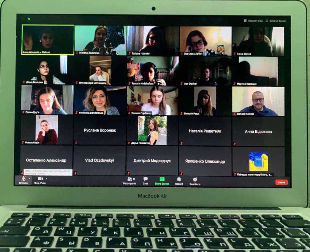 В межах тренінгу з вирішення юридичних кейсів для студентів 5 курсу (спеціалізація – "Публічне право") було запрошено Анну Адамська-Галлант, колишню суддю, що має майже 17 років досвіду у розгляді кримінальних справ в усіх інстанціях; з лютого 2013 року до червня 2018 року вона працювала міжнародним суддею в Косово у найбільш серйозних справах, включаючи воєнні злочини, злочини проти людства, організовану злочинність та корупцію; наразі вона працює як ключовий міжнародний експерт Проєкту ЄС “Право-Justice”; бере участь у сприянні верховенству права та суддівській незалежності, в тому числі через діяльність в суддівських об’єднаннях (польська асоціація суддів “Iustitia” та MEDEL, Magistrats Europeen pour la Democratie et les Libertes).
