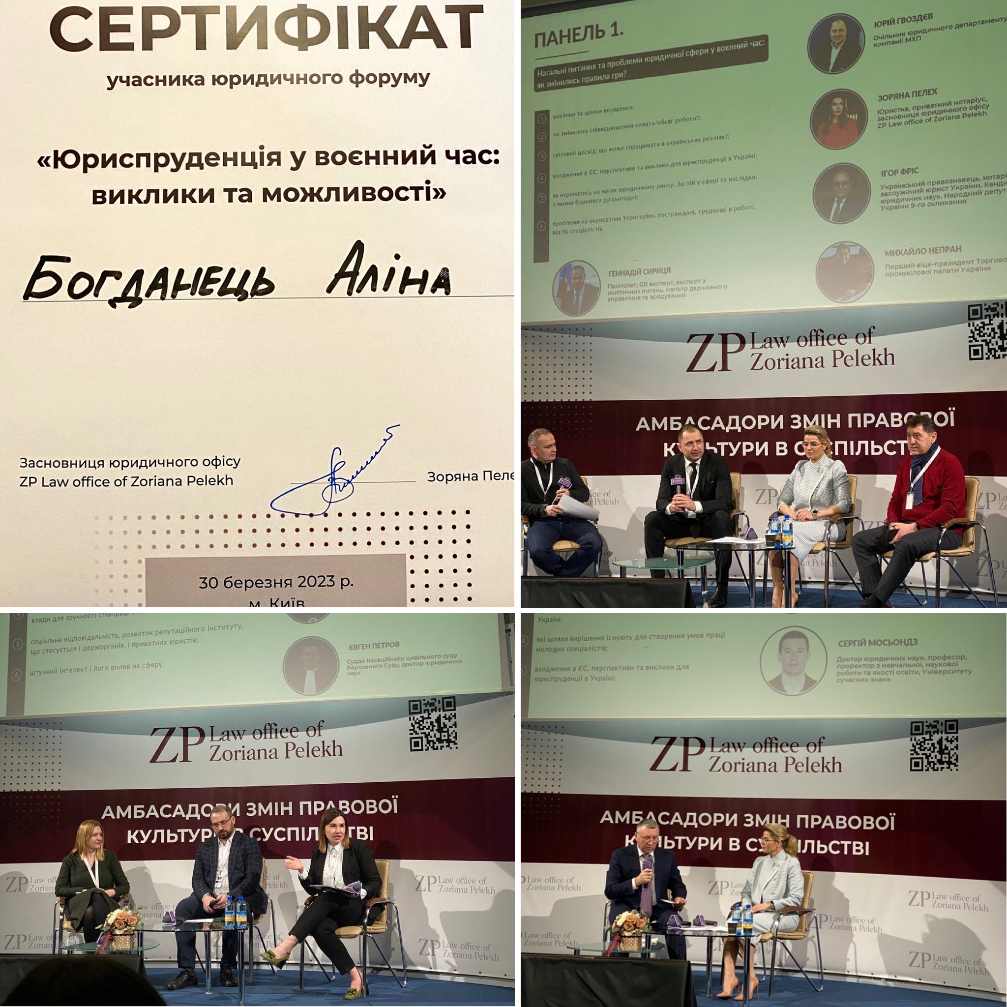 - Участь у юридичному форумі «Юриспруденція у воєнний час: виклики та можливості»