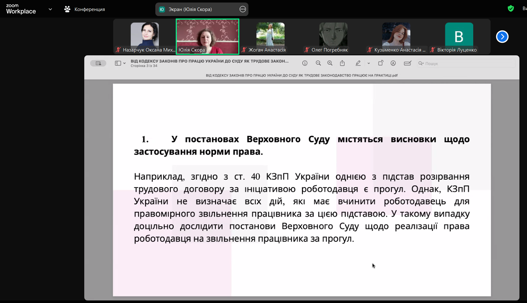 16 квітня 2025 року о 13:00 відбувся науково-практичний дискурс із адвокаткою Юлією СКОРОЮ, організований кафедрою приватного права ННІ «Юридичний інститут КНЕУ ім. В. Гетьмана». Тема зустрічі – «Від Кодексу законів про працю України до суду: як трудове законодавство працює на практиці?» – викликала жвавий інтерес серед здобувачів та викладачів.