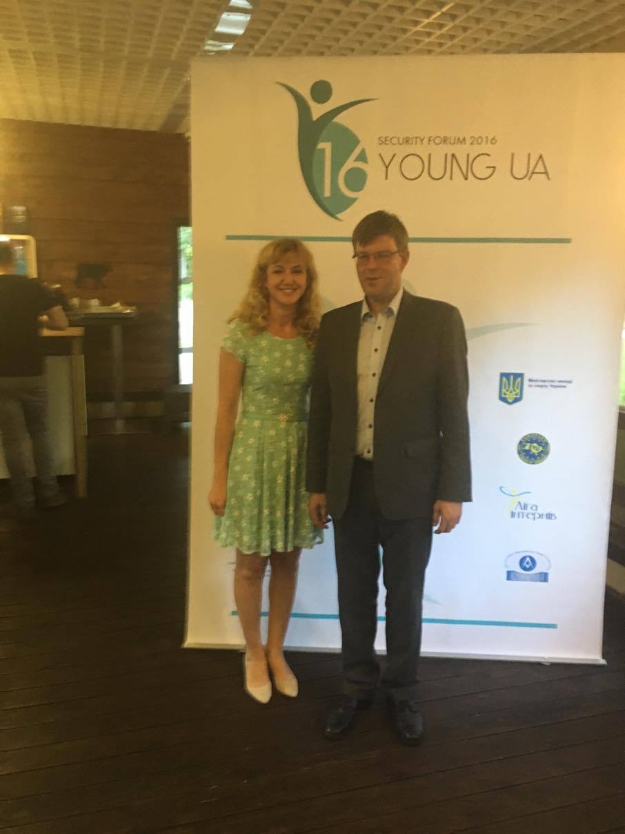10 по 16 липня Young UA Security Forum 201608 Серпня 2016р.![]() Старший викладач кафедри міжнародного та європейського права Єршова Вікторія Сергіївна взяла участь у міжнародній конференції «Young UA Security Forum 2016». Вона проходила з 10 по 16 липня в рамках Програми Професійної Підготовки Україна-НАТО при Офісі Зв’язку НАТО в Україні за підтримки Міністерства молоді та спорту України. Young UA Security Forum 2016 зібрав понад 100 учасників з 17 країн світу, зокрема, із США, Канади, Німеччини, Швеції, Нідерландів, Польщі, Туреччини, Грузії тощо. Мовою проведення форуму стала англійська. До участі в якості спікерів були запрошені поважні гості - представники штаб-квартири НАТО, міжнародних організацій та посольств, науковці та професори європейських університетів. Серед них: Голова Офісу зв'язку НАТО в Україні Александер Вінніков; Міністр молоді та спорту України Ігор Жданов; Посол Литовської Республіки Марюс Януконіс; Представник Офісу зв'язку НАТО в Україні полковник-лейтенант Ове-Уруп Мадсен; Представник Європейського Центру досліджень питань безпеки ім. Дж. Маршалла др. Себастьян фон Мюнхов; викладач Інституту міжнародних відносин та політичних наук при Вільнюському університеті др. Девідас Шлєкіс; Викладач Берлінського Інституту міжнародної безпеки др. Маґдалена Кірхнер; Спеціальний радник з питань безпеки від Великобританії при Міністерстві оборони України Філ Джонс. Надзвичайний і Повноважний Посол Литовської Республіки в Україні Маріус Януконіс та старший викладач кафедри міжнародного та європейського права, к.ю.н. Єршова Вікторія Сергіївна