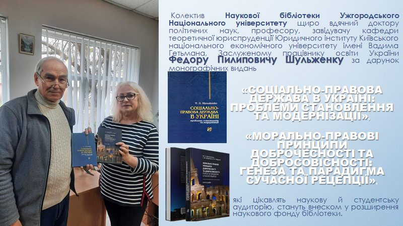 - Вдячність за дарунок монографічних видань завідувачу кафедри Ф.П. Шульженку
