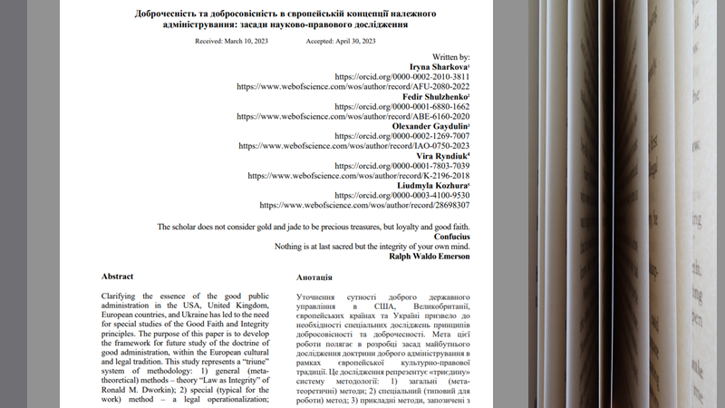 Доброчесність та добросовісність в європейській концепції належного адміністрування: засади науково-правового дослідження. Нове видання:30 Листопада 2023р.