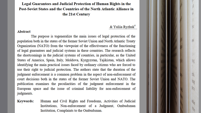 - Legal Guarantees and Judicial Protection of Human Rights in the Post-Soviet States and the Countries of the North Atlantic Alliance in the 21st Century. Нове видання: