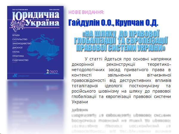 На шляху до правової глобалізації та європеїзації правової системи України. Нове видання:12 Серпня 2022р. |