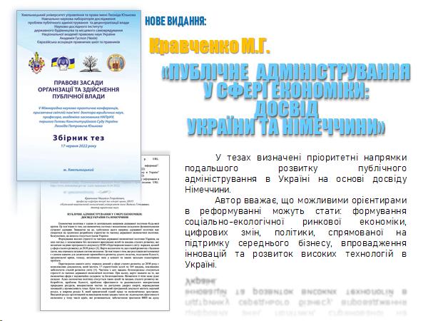 - Публічне адміністрування у сфері економіки: досвід України та Німеччини. Нове видання: