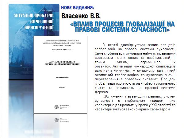 - Вплив процесів глобалізації на правові системи сучасності. Нове видання: