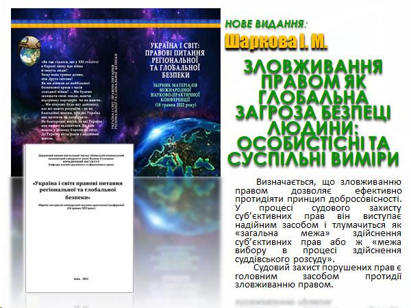 - Зловживання правом як глобальна загроза безпеці людини: особистісні та суспільні виміри. Нове видання: