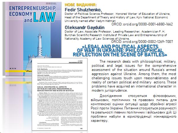 - Legal and political aspects of war in Ukraine: philosophical reflection on the scene of battles. Нове видання: