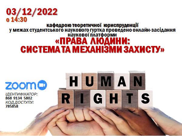 Онлайн-засідання наукової платформи «ПРАВА ЛЮДИНИ: СИСТЕМА ТА МЕХАНІЗМИ ЗАХИСТУ»03 Грудня 2022р. |