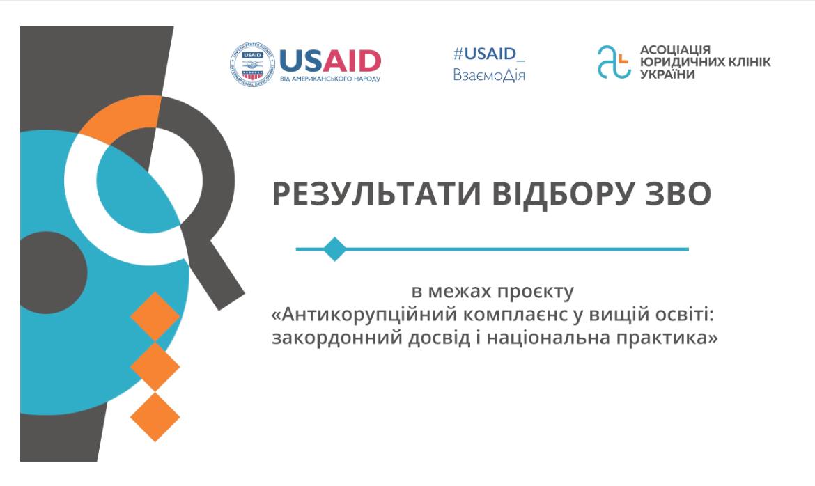 Відбір та подальша співпраця з українськими ЗВО є частиною проєкту АЮКУ «Антикорупційний комплаєнс у вищій освіті: закордонний досвід і національна практика», що реалізується за підтримки Проєкту USAID «Підтримка організацій-лідерів у протидії корупції в Україні «ВзаємоДія». |
